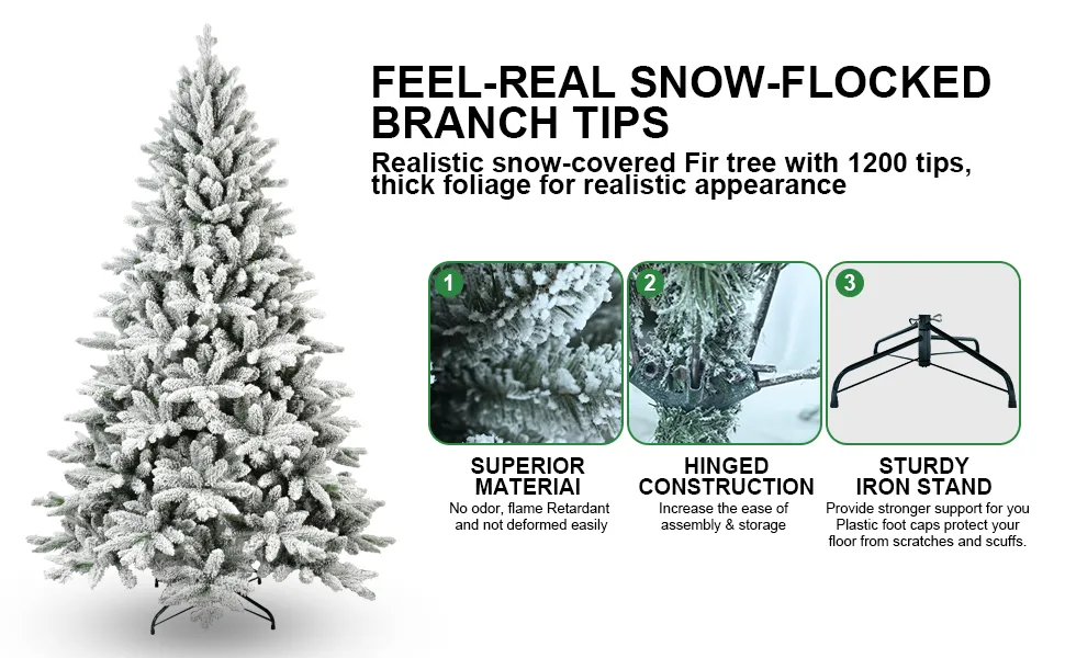 5ft PVC PE Flocking Hinged Tree Environmentally Friendly Fireproof Artificial Christmas Flocked Tree By Limei Tree