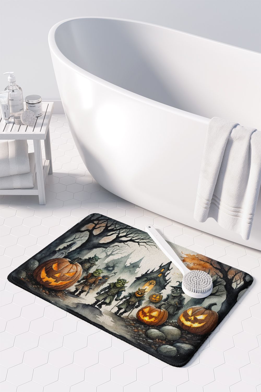Celebrate Halloween with this Halloween Floor Mat. Transform your floor into a work of art with Caroline's Treasures' Memory Foam Mat. This mat offers not only a stunning visual appeal but also a luxurious, plush feel that's incredibly comfortable to the touch. It's a versatile, machine-washable mat designed for both bath and kitchen use, ensuring you experience the best in comfort and convenience. Care Instructions: Maintaining this memory foam mat is a breeze. Simply follow the care instructions on the product tag. It's recommended to wash in cold water and dry on a low-temperature setting in the dryer. This ensures the mat retains its quality and longevity, allowing you to enjoy its beauty and comfort for a long time. Caroline's Treasures' Memory Foam Mat Machine Washable is the perfect blend of artistry, comfort, and practicality, making it a standout addition to any space. Upgrade your home decor with this versatile and stylish mat today.